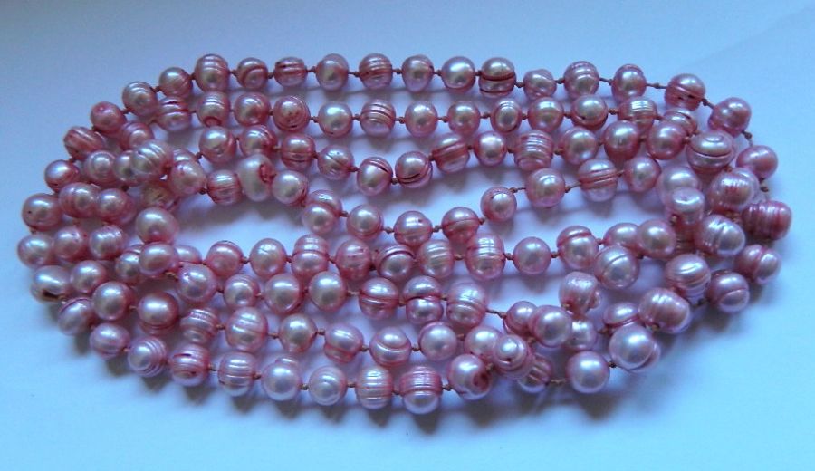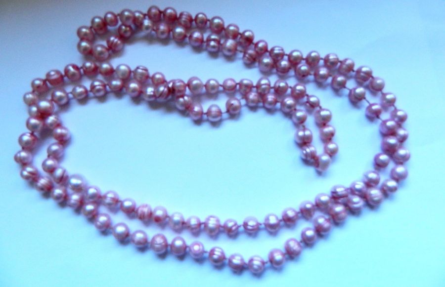 Naszyjnik ma około 125 cm, wykonany z pięknych perełek słodkowodnych.