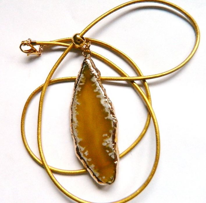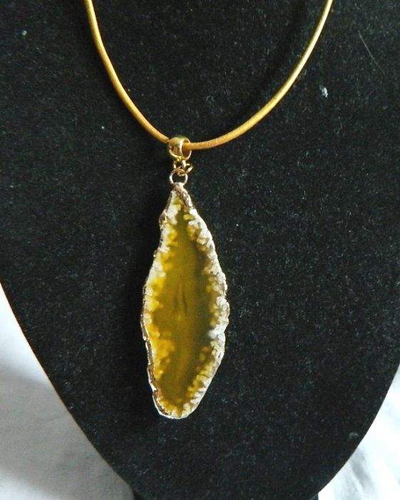 Zadaj pytanie dotyczące produktu: Jasnożółty nieregularny agat w złotej oprawie, wisiorek