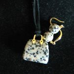 Zadaj pytanie dotyczące produktu: Jaspis dalmatyńczyk-kamień dobrobytu, wisiorek torebka i kolczyki, zestaw biżuterii