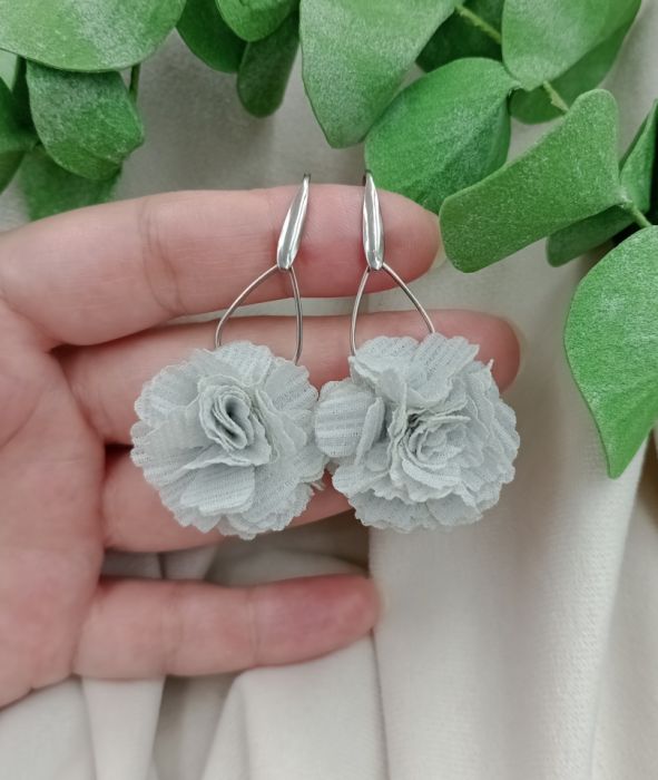 Zadaj pytanie dotyczące produktu: Jedwabne kolczyki kwiaty szare siwe