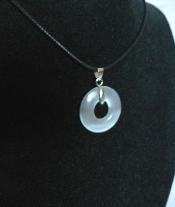 Kamień do nieduże, delikatne kółko z dziurką. Ma średnicę 25 mm.
