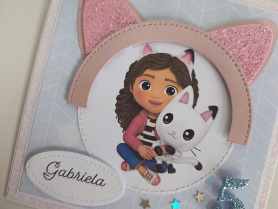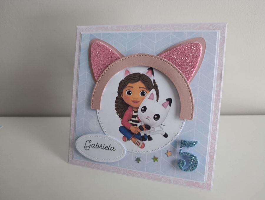 Zadaj pytanie dotyczące produktu: Kartka na urodziny z prsonalizacją Koci Domek Gabi