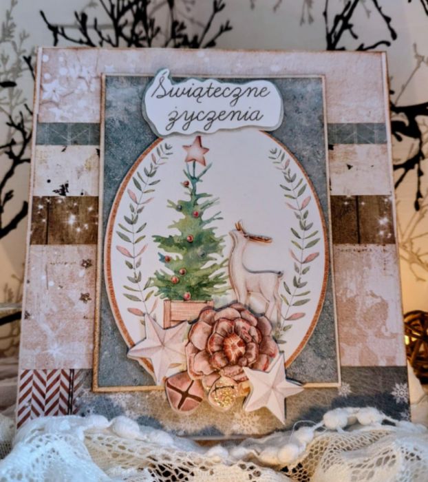 Kartka okolicznościowa na Boże Narodzenie o wym. 14,5x 14,5cm.