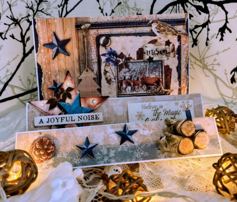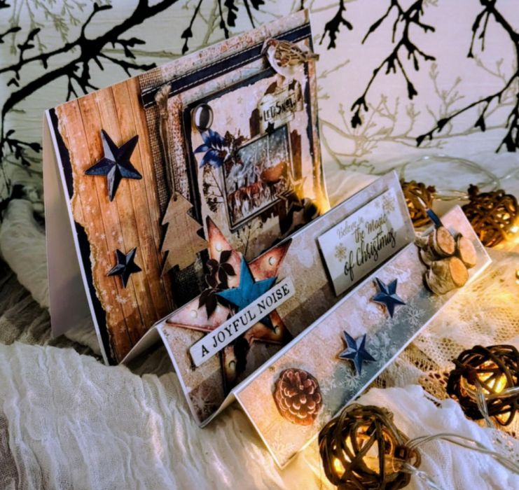 Kartka schodkowa na Boże Narodzenie o wym. 10,5x 15,0cm. Elementy układane schodkowo sprawiają wrażenie przestrzenności.