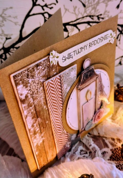 Kartka okolicznościowa na Boże Narodzenie, z papieru kraftowego o wym. 14,5x 14,5cm.