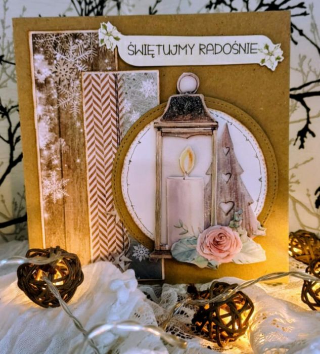 Wykonana z papierów wysokiej jakości. Papier bazowy o gramaturze250g oraz papier scrapowy i scrapki.