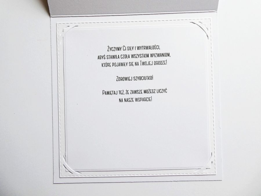 Ręcznie wykonana kartka z życzeniami powrotu do zdrowia - pełna otuchy i nadziei.