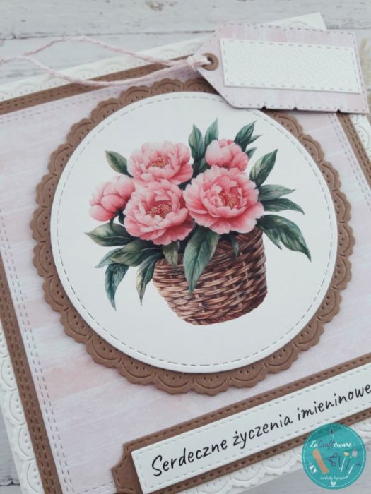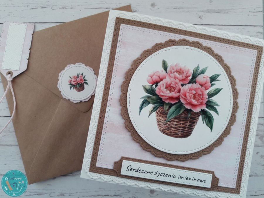 Nazwa produktu: Kartka imieninowa z piwoniami w koszu