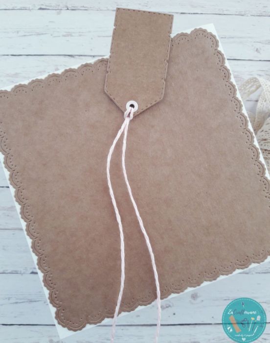 Do kartki dołączam GRATIS w postaci widocznej na zdjęciu etykietki, za pomocą której można podpisać upominek imieninowy i przyczepić ją do wstążki, którą obwiązany jest prezent, za pomocą sznureczka, który również znajduje się w zestawie.