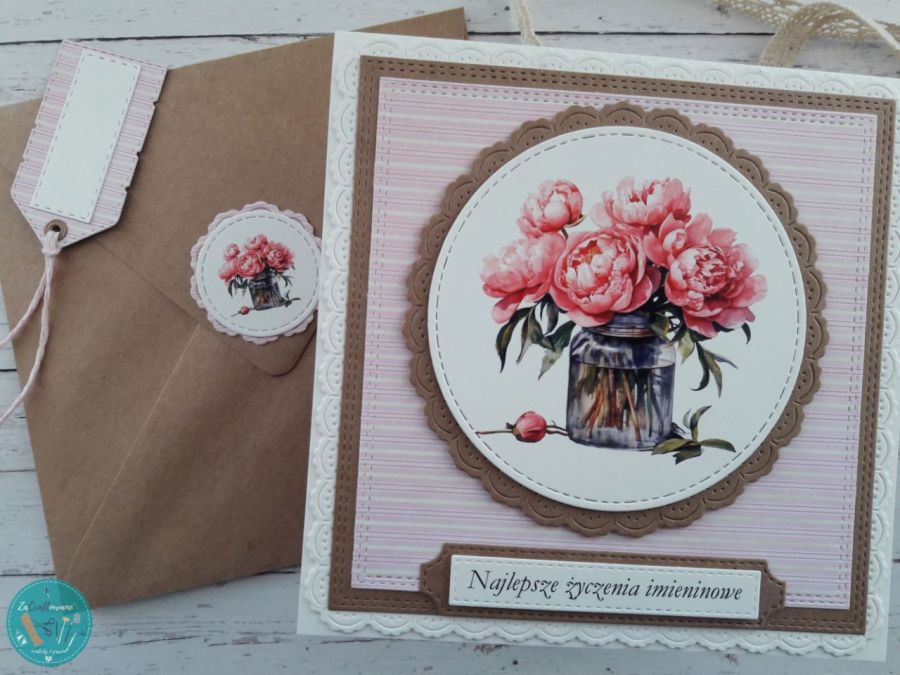 Nazwa produktu: Kartka imieninowa z piwoniami w słoiku