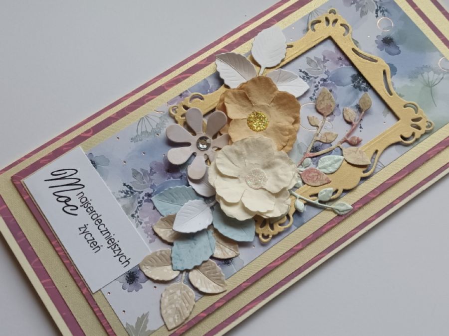 Kartka okolicznościowa idealna na urodziny, imieniny lub inne okazje, wykonana z wysokiej jakości papierów, w komplecie z kopertą.
