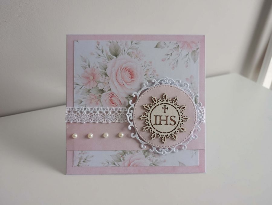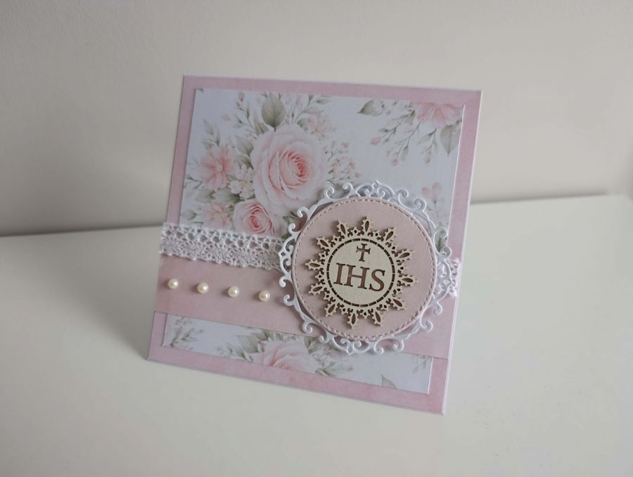 Zadaj pytanie dotyczące produktu: Kartka Komunia Święta delikatne róże