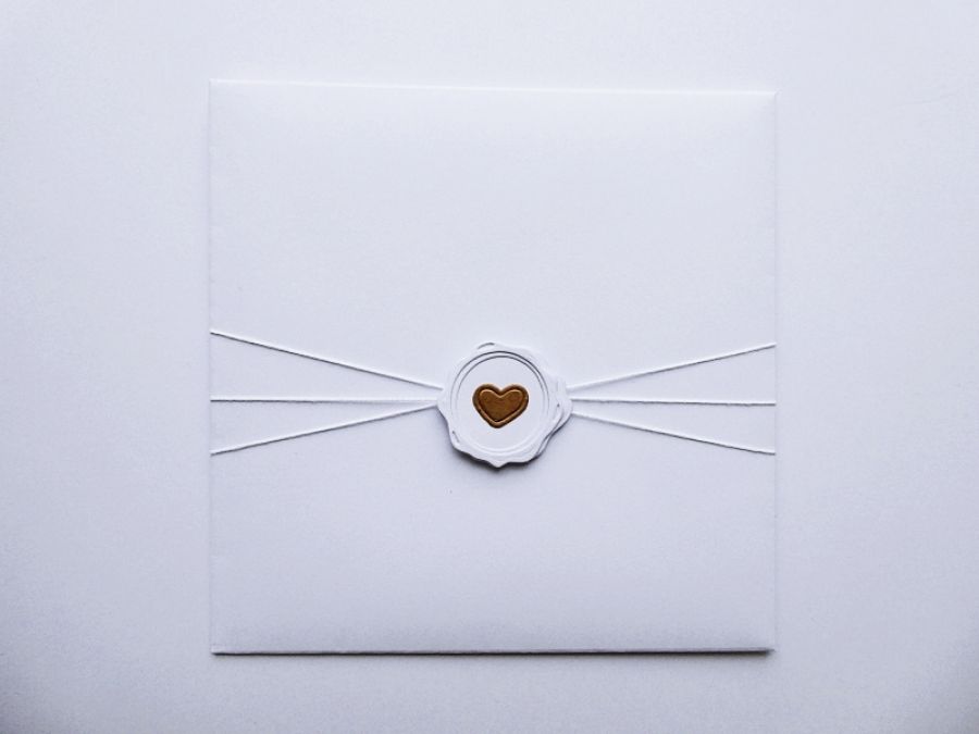 Przyozdobiona dekoracyjnym sznurkiem ozdobionym pieczęcią z sercem.