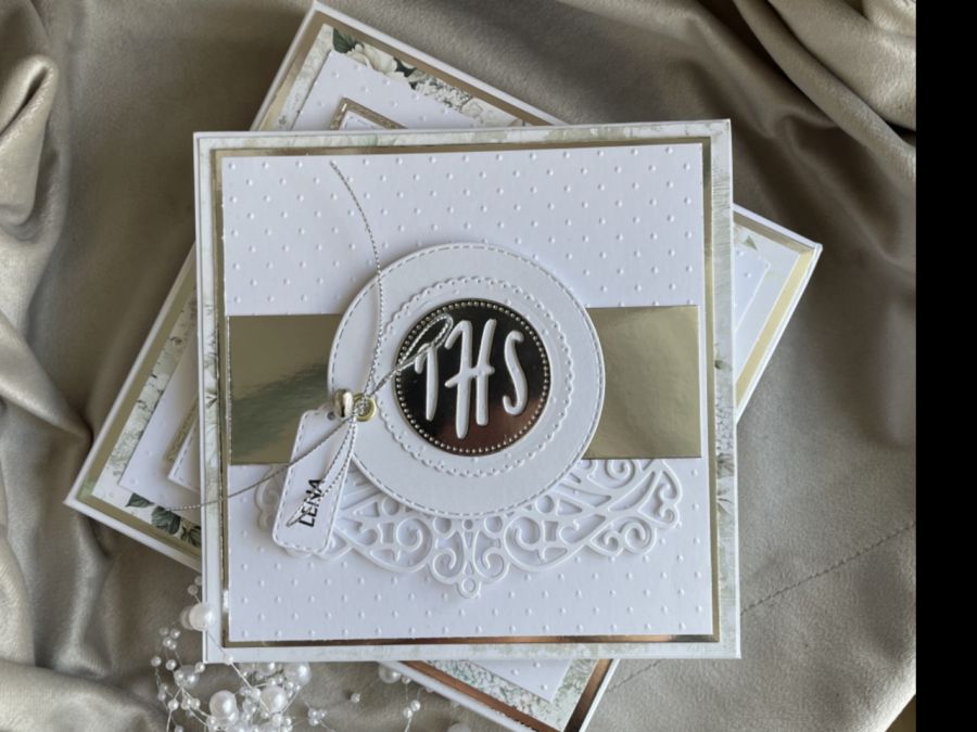 kartkę komunijną w formacie 15 × 15 cm (większą niż standardowe kartki, dzięki czemu prezentuje się bardziej okazale),