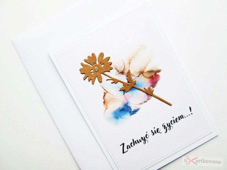 Prosta minimalistyczna - ręcznie wykonana - kartka z przesłaniem: ZACHWYĆ SIĘ ŻYCIEM...!