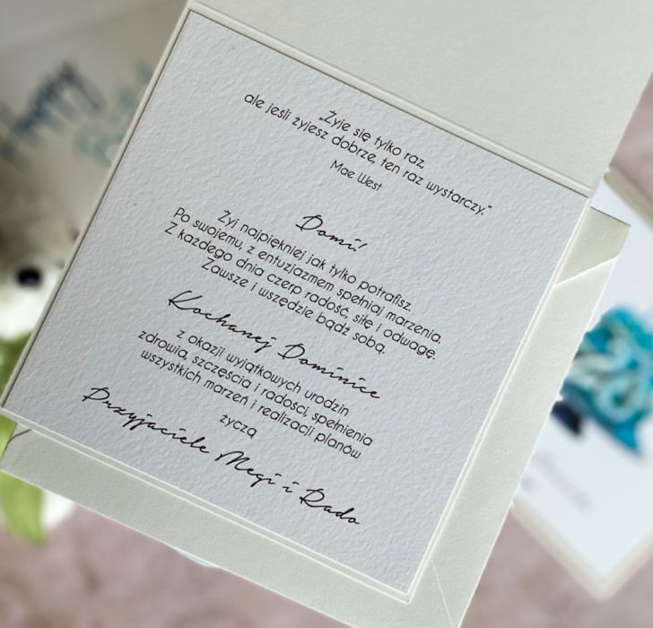 - personalizowana kartka na zamieszczenie życzeń