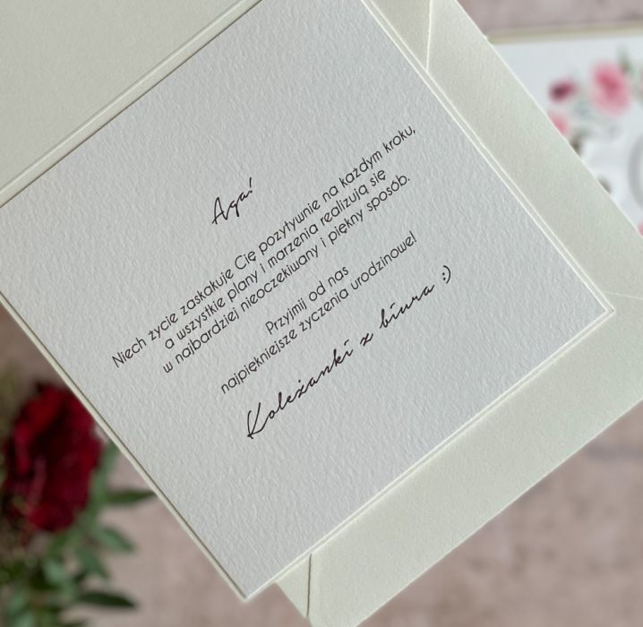 Cena obejmuje kartkę wraz z kopertą w kolorze ecru.