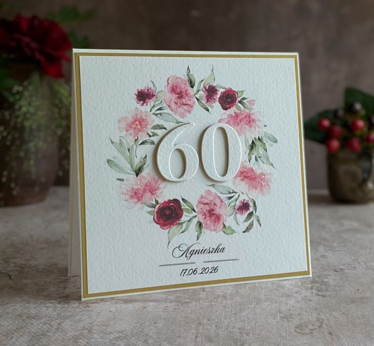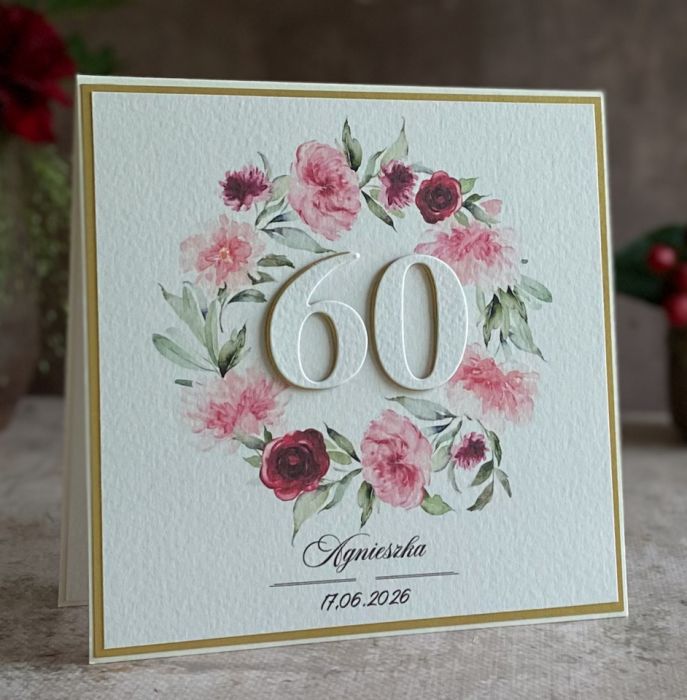 Elegancka, ręcznie wykonana, personalizowana kartka z okazji 60-tych urodzin.