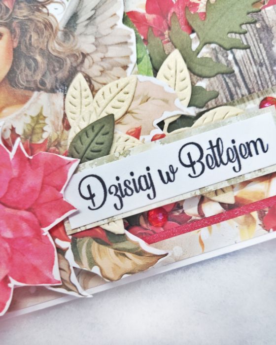 - świąteczne elementy: aniolek, ostrokrzew, poisencje