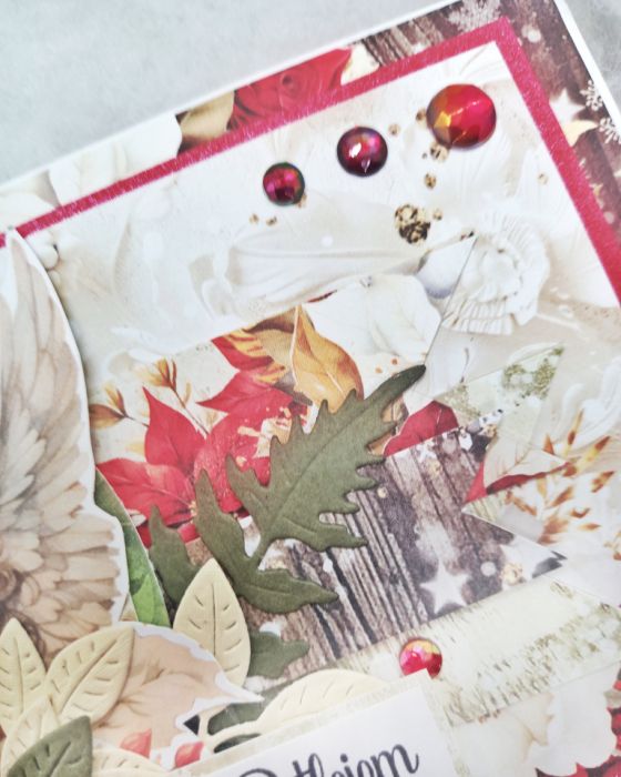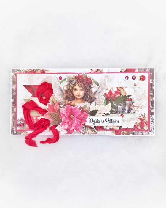 Kartka na Boże Narodzenie wykonana ręcznie techniką scrapbookingu, z dbałością o każdy szczegół.