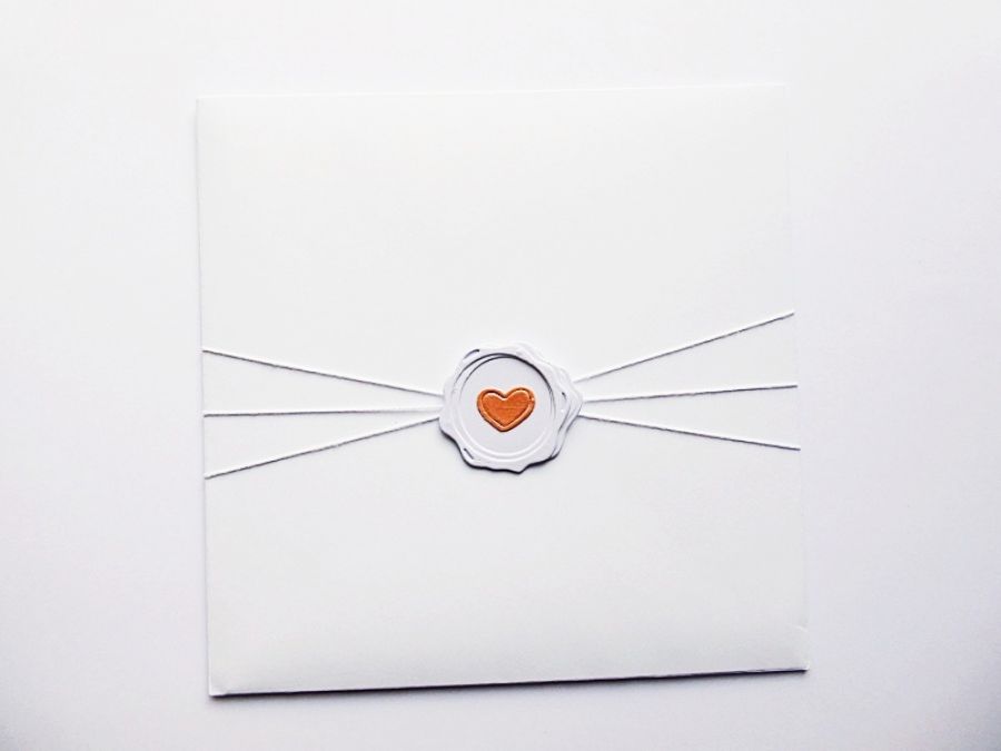 W komplecie jest elegancka biała koperta, która została przyozdobiona w sposób nawiązujący do kartki.