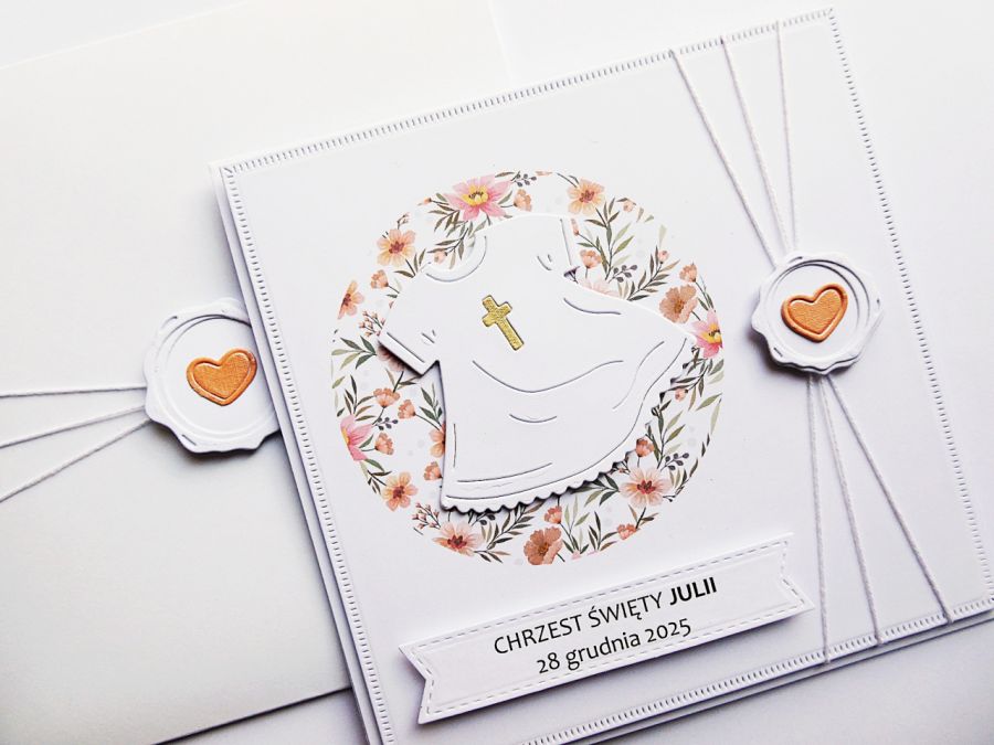 Zadaj pytanie dotyczące produktu: Kartka na Chrzest minimalistyczna z szatką