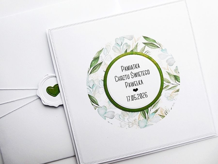 Zadaj pytanie dotyczące produktu: Kartka na Chrzest ręcznie robiona w zieleni
