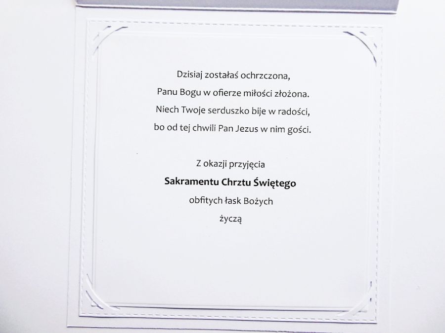 Kartka przepięknie wykonana z bardzo dobrej jakości materiałów, w rzeczywistości ładniejsza niż na zdjęciach. Pięknie skomponowane życzenia. Miła współpraca i ekspresowa realizacja. Szczerze polecam!