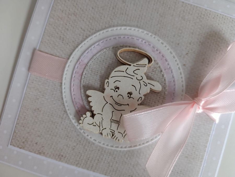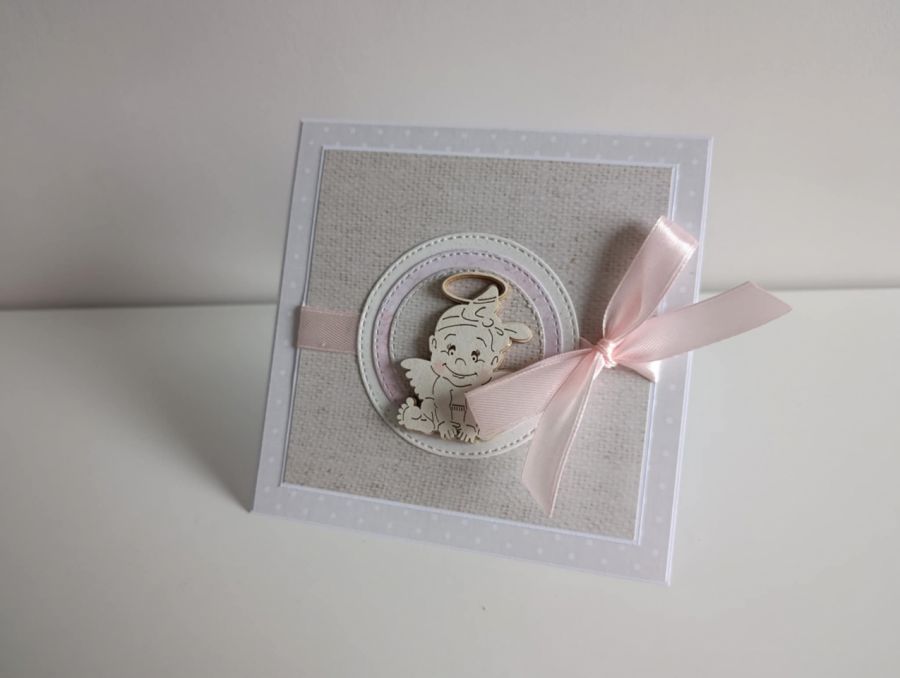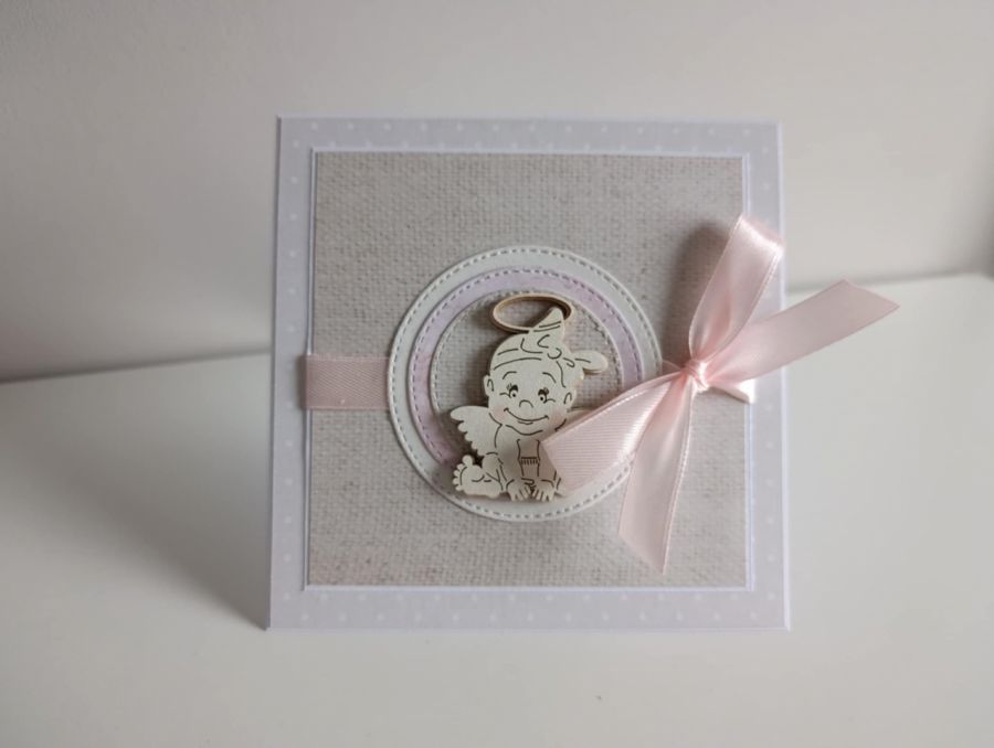 Nazwa produktu: Kartka na Chrzest Święty z aniołkiem wianuszek