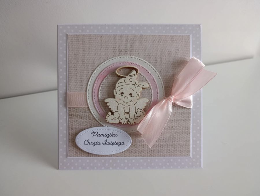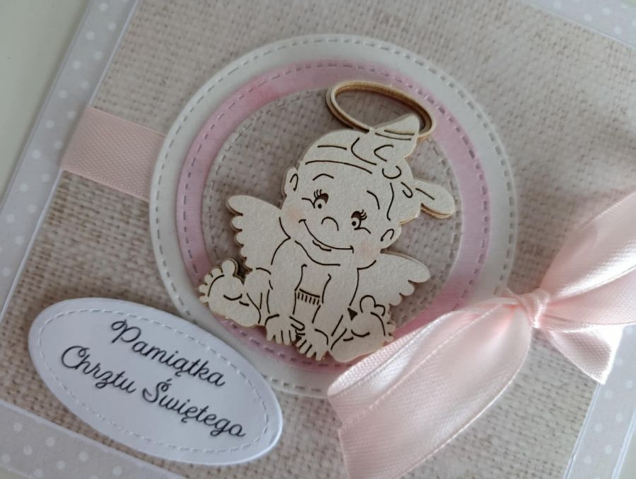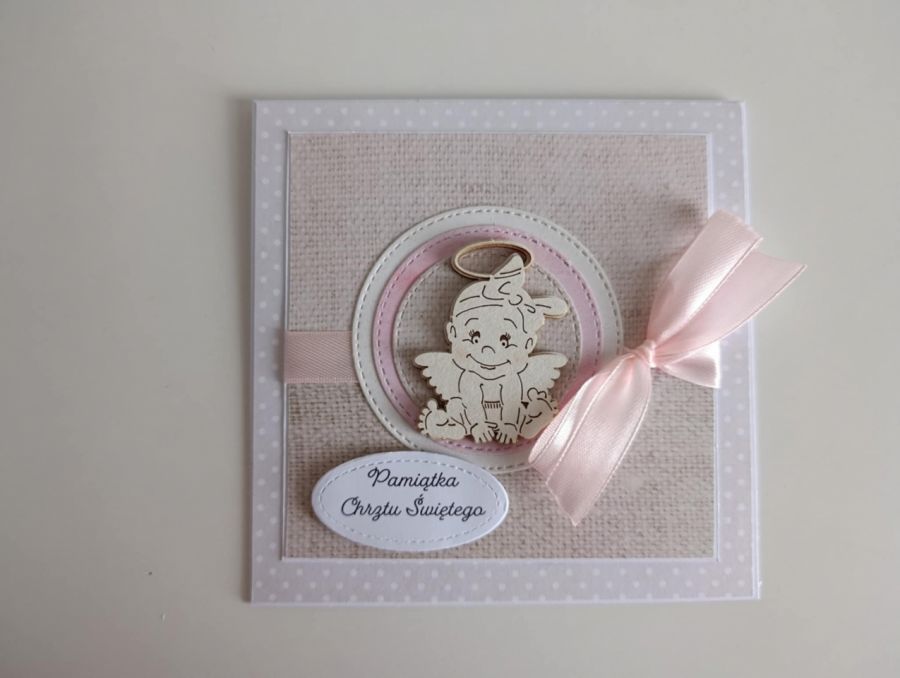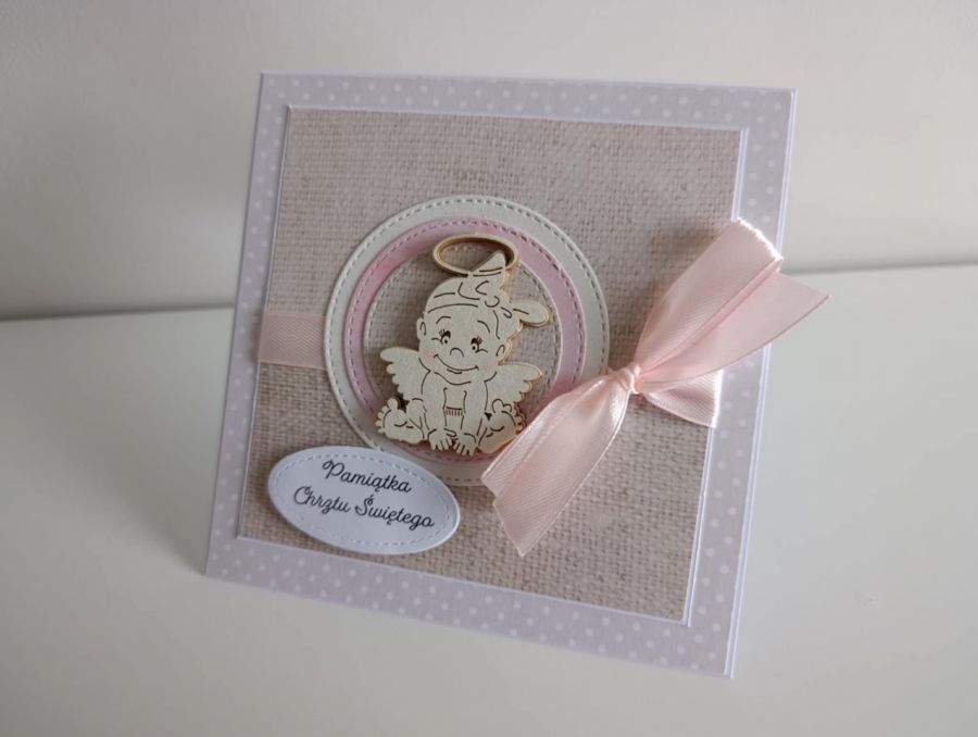 Nazwa produktu: Kartka na Chrzest Święty z aniołkiem wianuszek