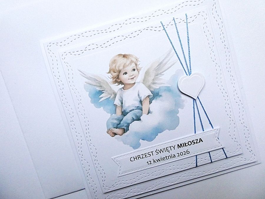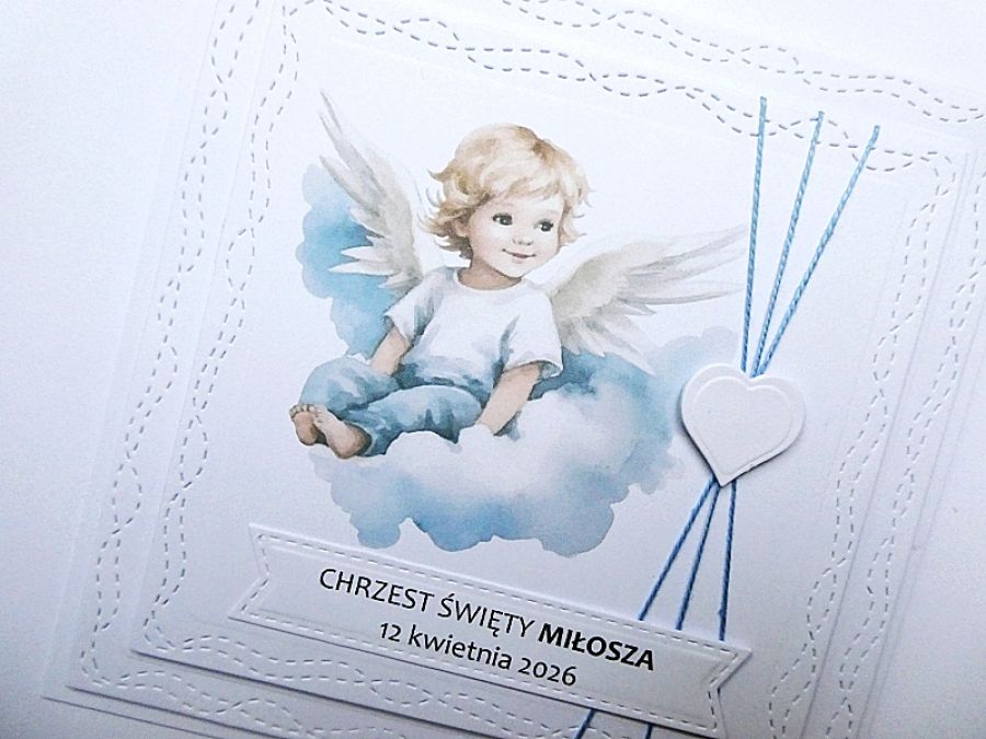 Zadaj pytanie dotyczące produktu: Kartka na Chrzest z aniołkiem personalizowana