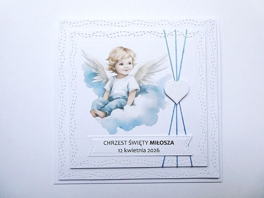 Nazwa produktu: Kartka na Chrzest z aniołkiem personalizowana