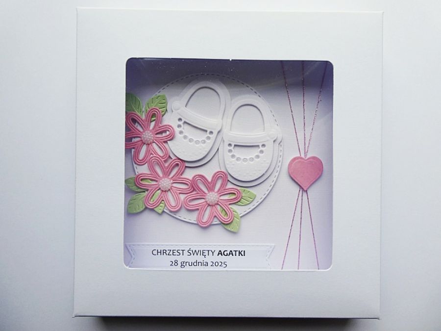 Zadaj pytanie dotyczące produktu: Kartka na Chrzest z bucikami dla dziewczynki
