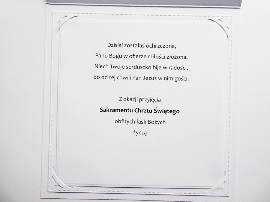 Zadaj pytanie dotyczące produktu: Kartka na Chrzest z szatką minimalistyczna