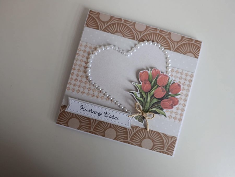 Zadaj pytanie dotyczące produktu: Kartka na Dzień Babci z sercem tulipany