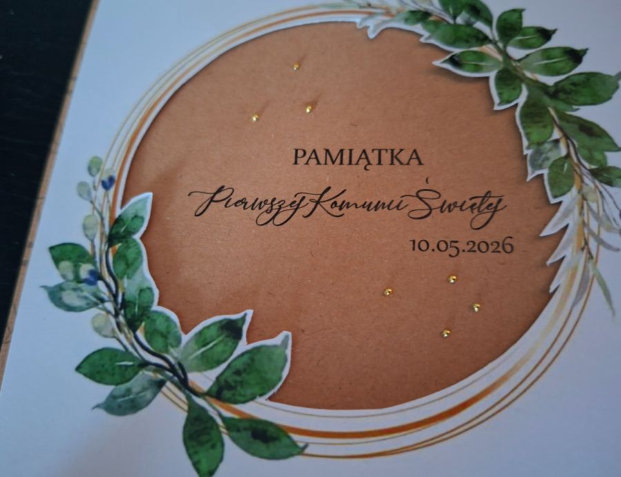Zadaj pytanie dotyczące produktu: Kartka na Komunie - pamiątka Pierwszej Komunii Świętej KH20260426-3