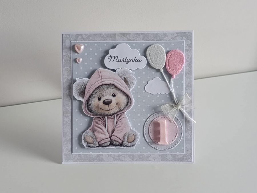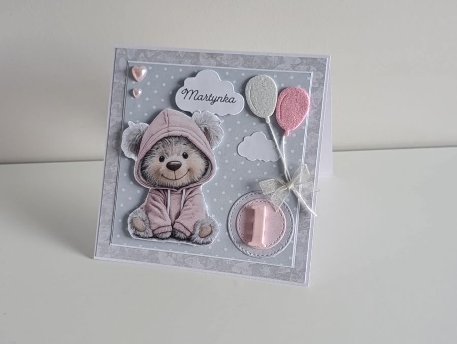 Zadaj pytanie dotyczące produktu: Kartka na roczek urodziny miś z balonikami