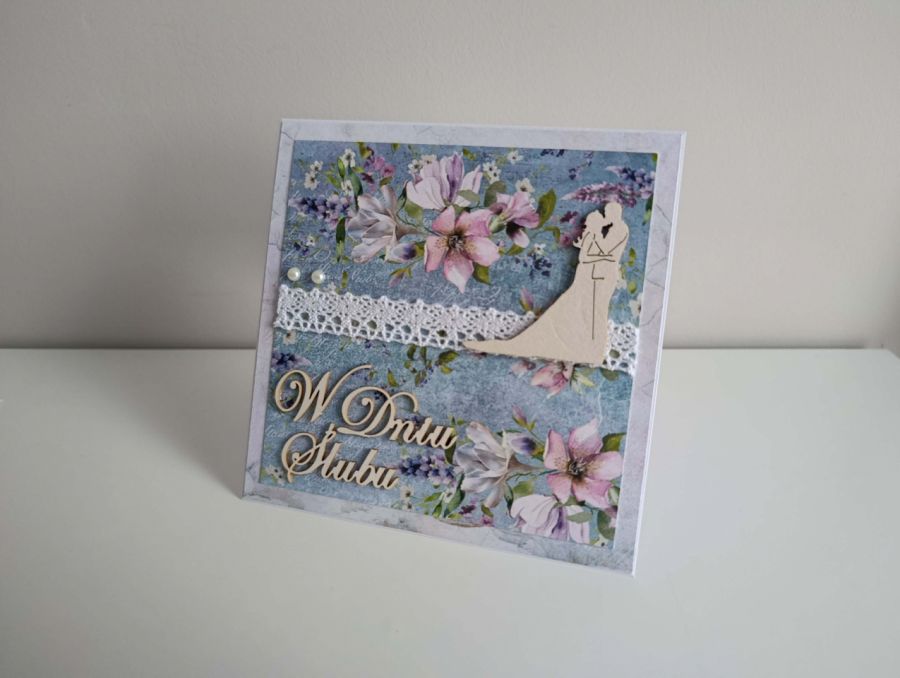 Nazwa produktu: Kartka okolicznościowa ręcznie robiona na ślub wianek
