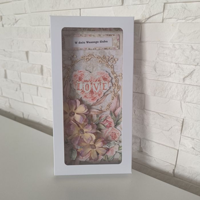 Kartka ręcznie wykonana w ozdobnym pudełku o wymiarach 21x10,5cm