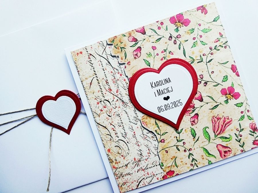 Zadaj pytanie dotyczące produktu: Kartka na ślub z czerwonymi kwiatami retro