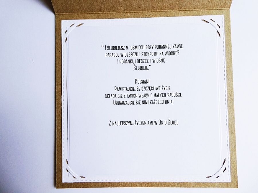 Personalizowana - z imionami Młodej Pary na froncie i oryginalnymi życzeniami wewnątrz.