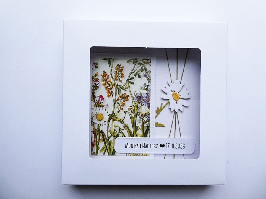 Wyjątkowa ręcznie wykonana kartka ślubna w dekoracyjnym pudełku z szybką.