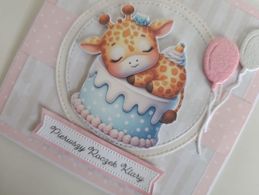 Zadaj pytanie dotyczące produktu: Kartka na urodziny, rocek żyrafa pastel