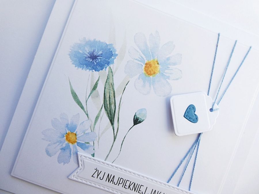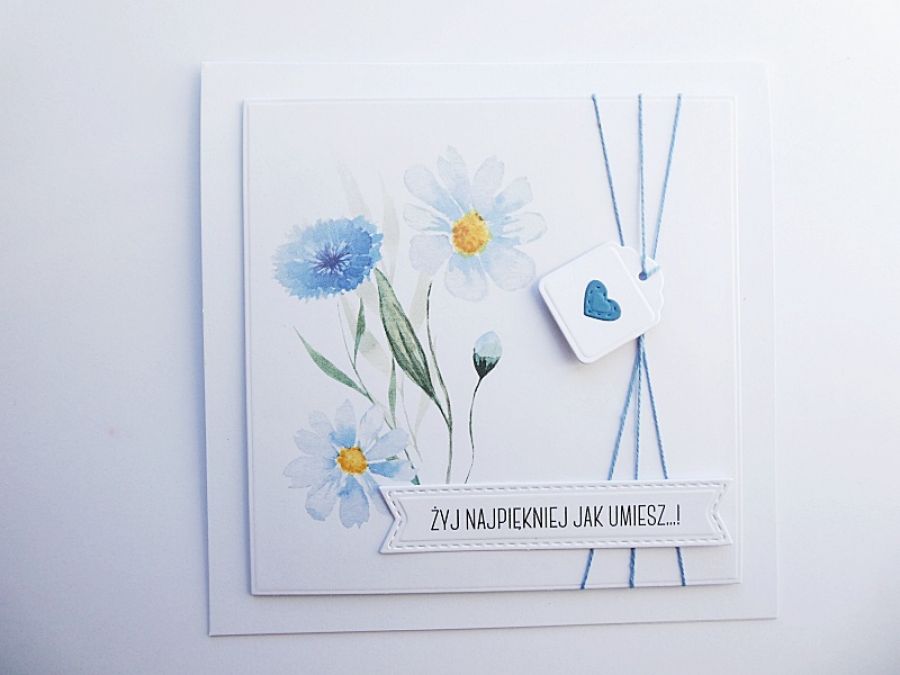 Prosta estetyka i napis-życzenie, który pasuje do wielu okazji : ŻYJ NAJPIĘKNIEJ JAK UMIESZ...! sprawiają, że kartka jest uniwersalna.