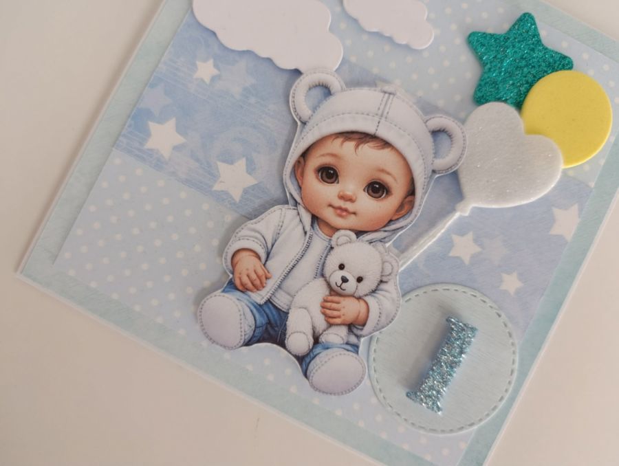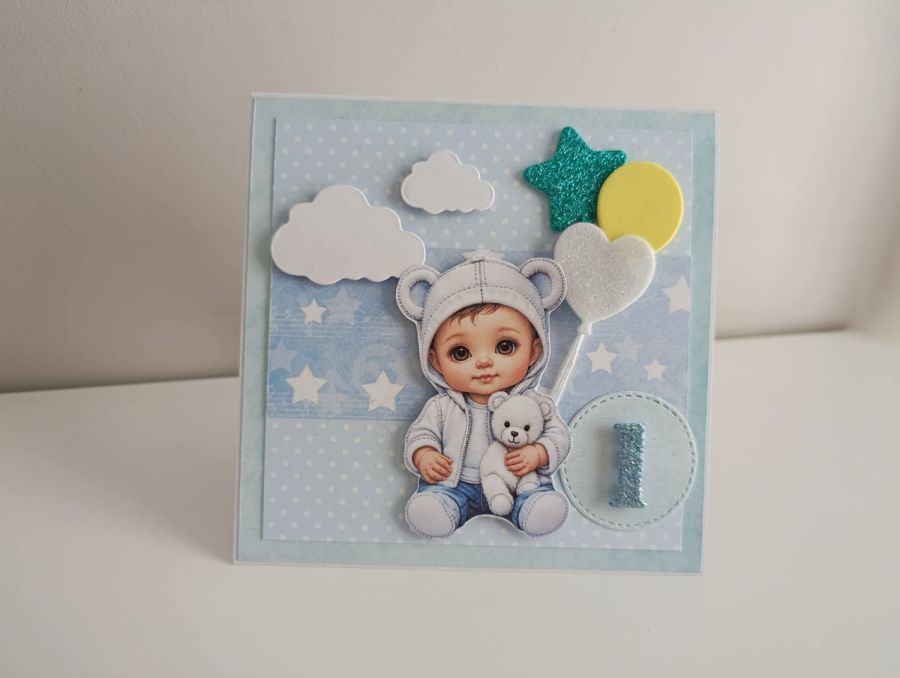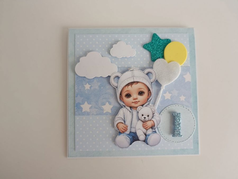 Zadaj pytanie dotyczące produktu: Kartka na urodziny roczek chłopiec z balonami
