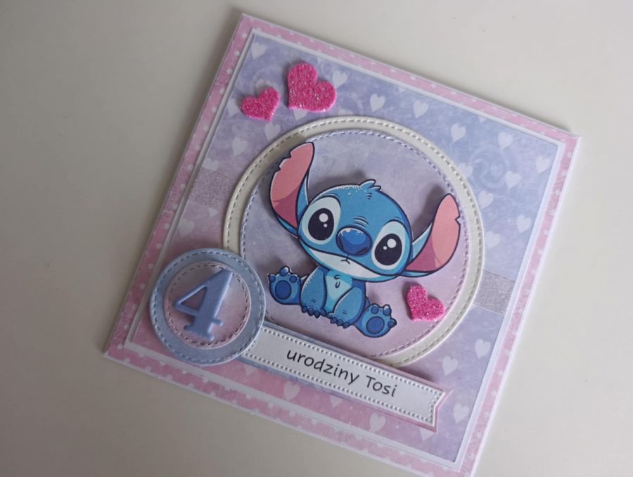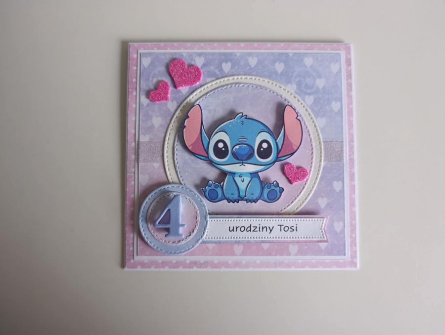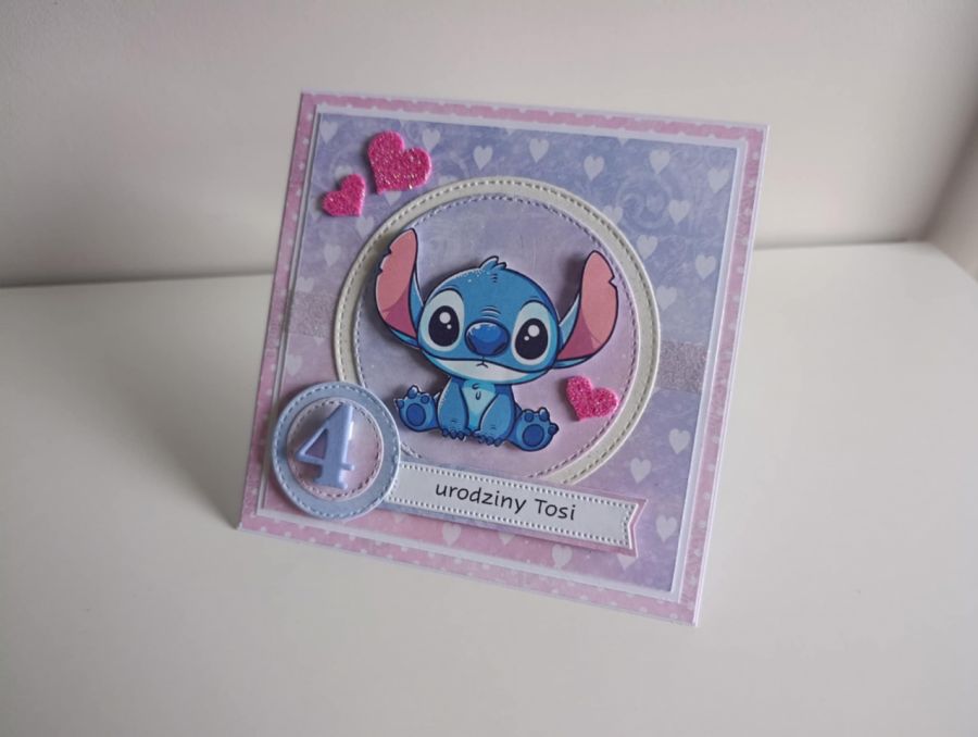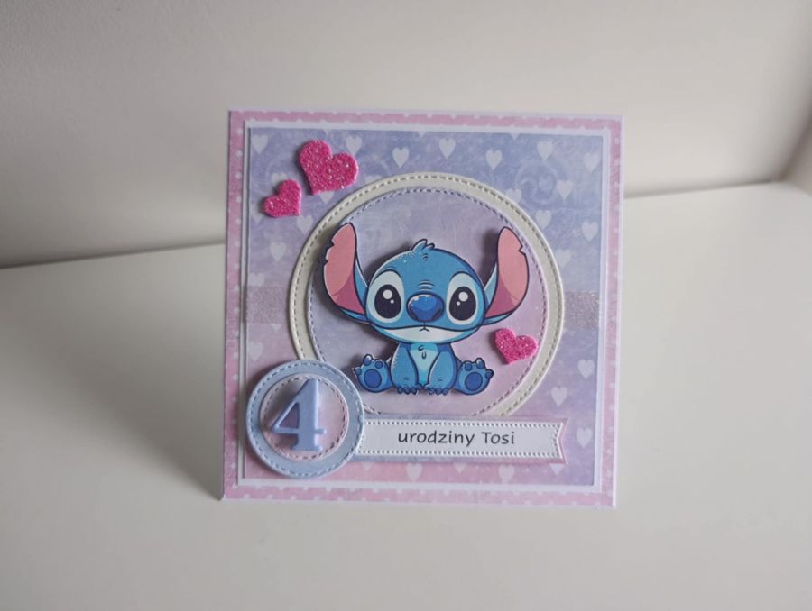 Zadaj pytanie dotyczące produktu: Kartka na urodziny Stich serduszka z personalizacją