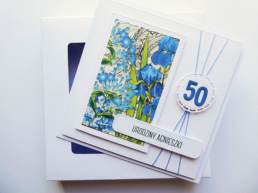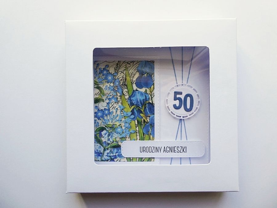 Kartka została przygotowana na 50 urodziny, ale może zostać dostosowana do dowolnej rocznicy.