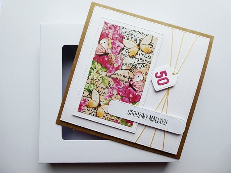 Kartka została przygotowana na 50 urodziny, ale może zostać dostosowana do dowolnej rocznicy.