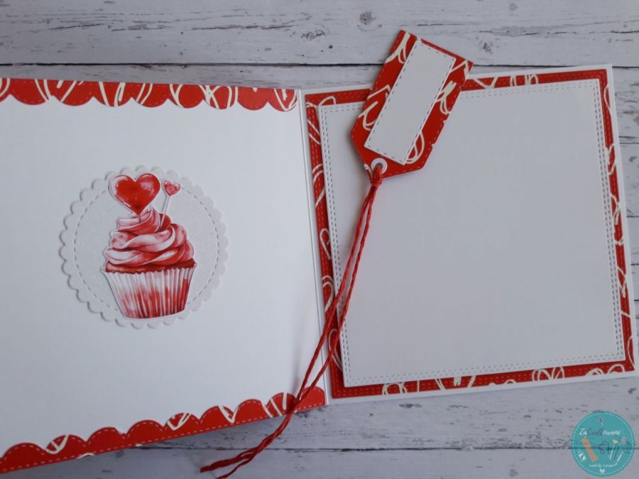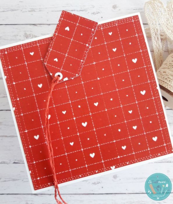 Do kartki dołączam GRATIS w postaci widocznej na zdjęciu etykietki, za pomocą której można podpisać upominek walentynkowy i przyczepić ją do wstążki, którą obwiązany jest prezent, za pomocą sznureczka, który również znajduje się w zestawie.