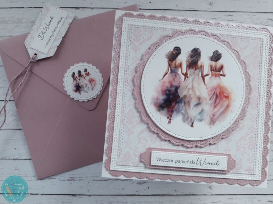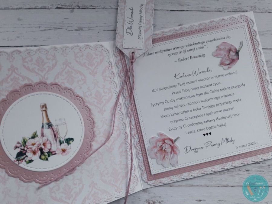 Nazwa produktu: Kartka na wieczór panieński w różu 2, personalizacja